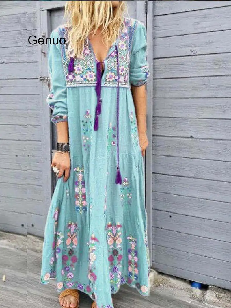 Get Stylish Drawstring Lace Long Sleeve Dress Bohemian Flower Printed Fashion Long Dresses Big Size 5XL 2020 New only undefined just for today
