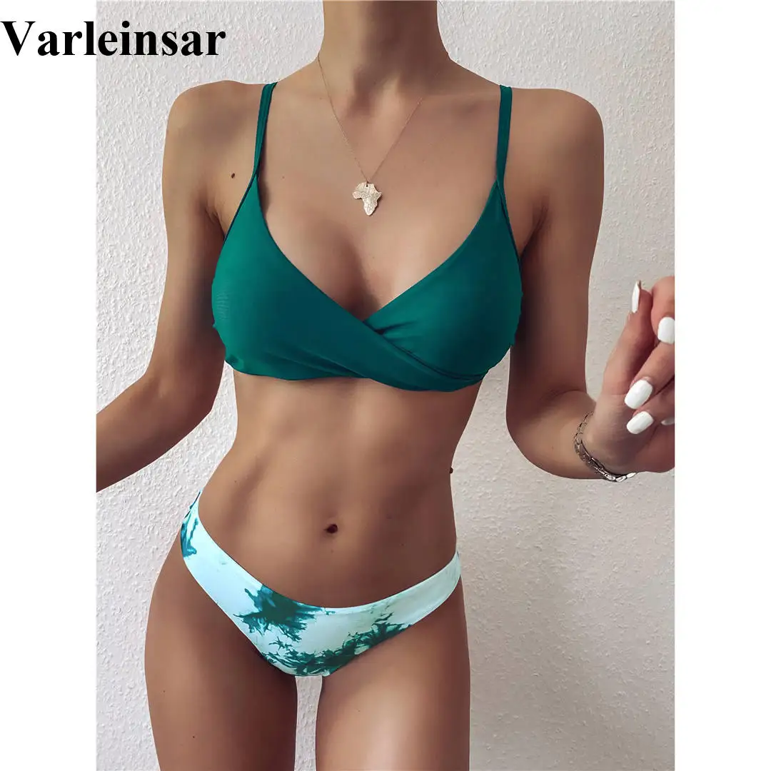 Get 2020 Tie Dye Mid Waist Bikini Female Swimsuit Women Swimwear Two-pieces Bikini set Ink Printed Bather Bathing Suit Swim V2421 only US $8.83 just for today