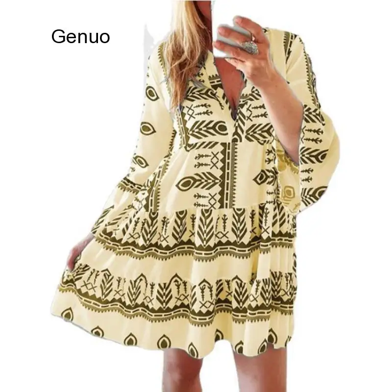 Genuo Dress Printed Ladies Beach Dresses Candy Color Plus Size Summer Boho Beachwear Clothes For Women 2020 New Arrival
