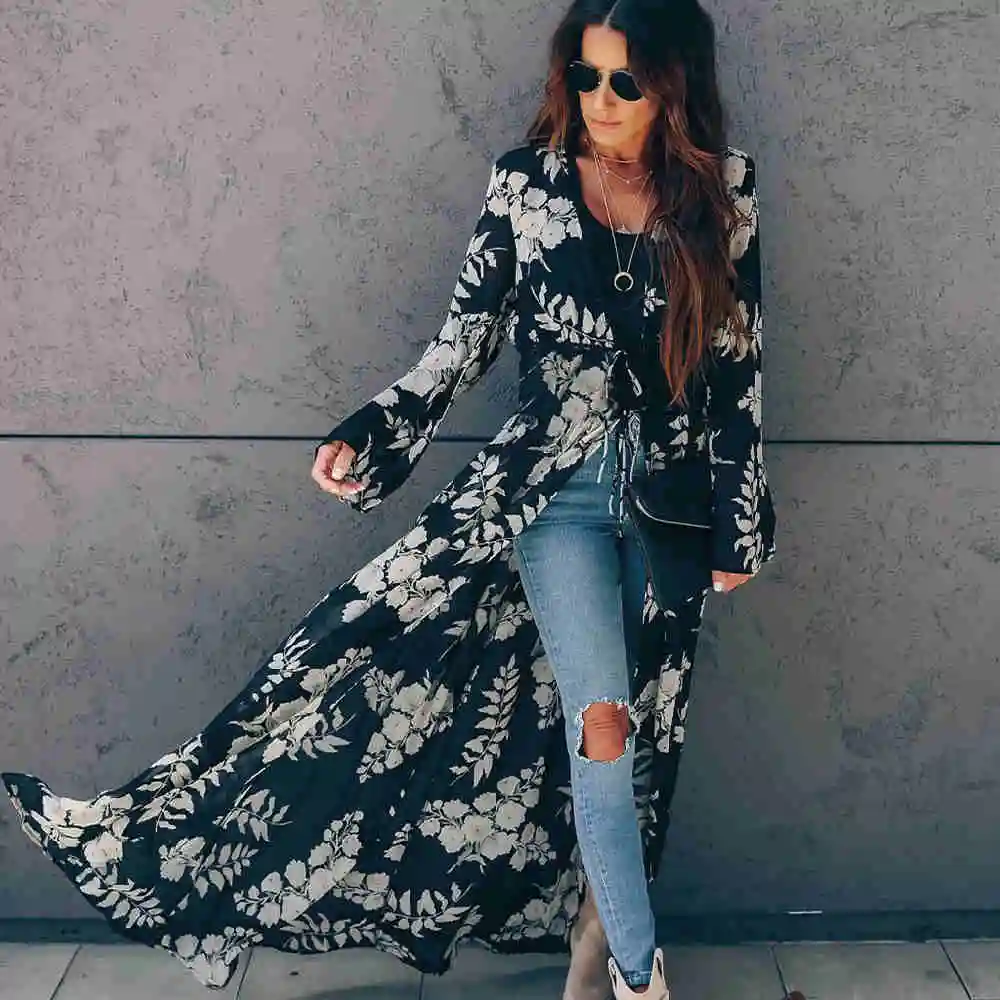 Get Bikini Cover-ups Boho Printed Long Kimono Cardigan Plus Size White Black Chiffon Tunic Women Beach Wear Swim Suit Cover Up A225 only US $13.75 just for today